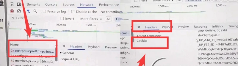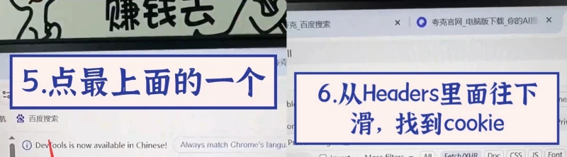 步骤6 :从 Headers 里面往下滑,找到 cookie