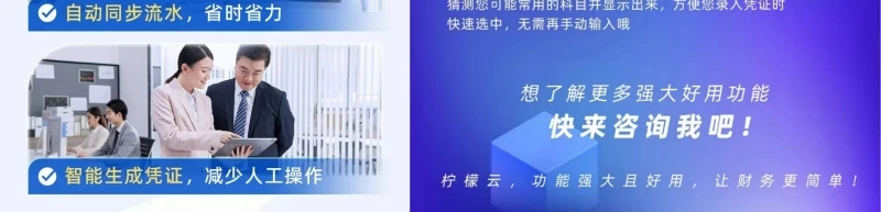 •柠檬云财务智能记账界面:AI自动匹配科目,凭证生成效率提升80%