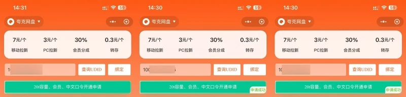 最重要的一点:你们开通了这个转存软件以后,你必须使用这个软件去做夸克推广。开通了权限以后,如果三天以内你没有使用这个软件去做夸克推广,转存软件后台会自动触发取消权限功能的,软件自己就给你的权限取消了。