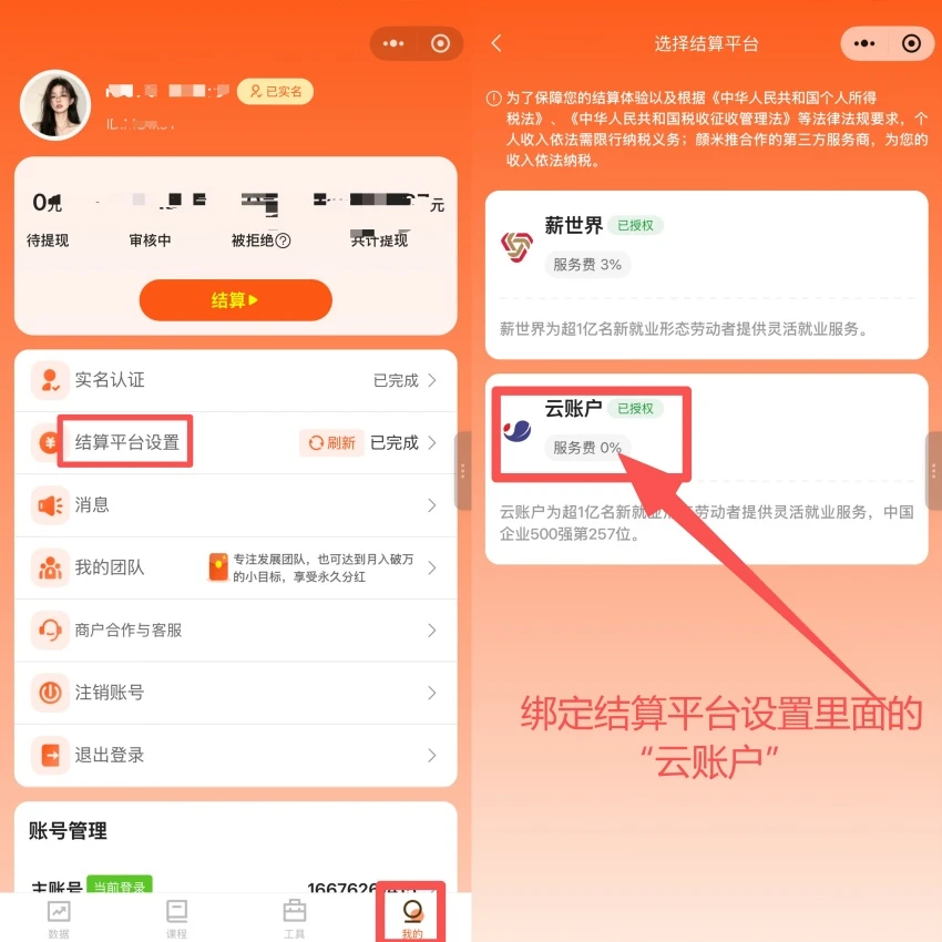 结算平台绑定提现银行账号